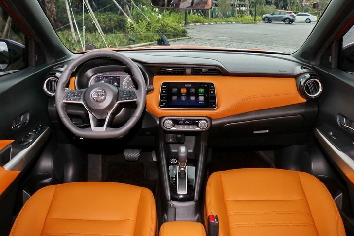 內裝部分,2-TONE的設計,7吋彩色中控數位儀表板、新世代D-Shape運動直覺多功能方向盤,以及全車規標配全新第三代X-Media 8吋智慧影音多媒體系統,同時支援Apple CarPlay及Android Auto功能,可連結手機使用導航、音樂、電話及智能語音操作等功能,享受開車不受限的自由。科技上,全新KICKS搭載NISSAN智行車聯系統,結合車輛防盜、遠端定位尋車、遠端車門上解鎖以及即時行車資訊推播等四大功能,讓車主的行動裝置與車輛連結互動,隨時掌握愛車狀態。