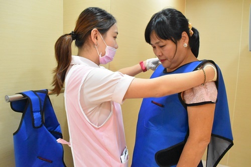 於是護士領著老媽進到X光室用3D斷層掃描機照X光片