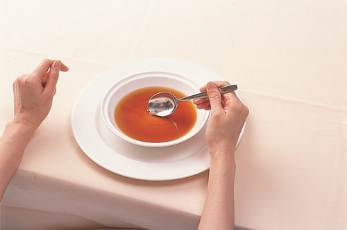 完全是可以看到碗的底部 拿起一湯匙滴雞精