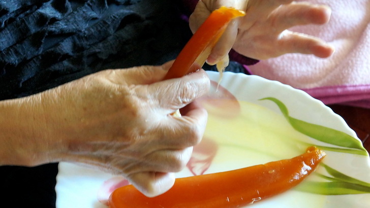 醃了3-5分鐘之後,老媽比較巧手所以我請老媽剝去烏魚子外的薄膜,又醃了幾分鐘