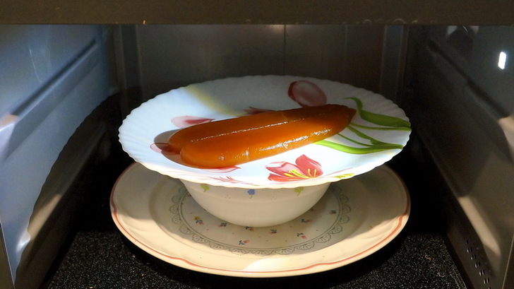 接下來就是重頭戲了,把醃過的烏魚子放入水波爐中很簡單,但是到底要用幾度的溫度來烤?要烤多久,這就是大難題了。