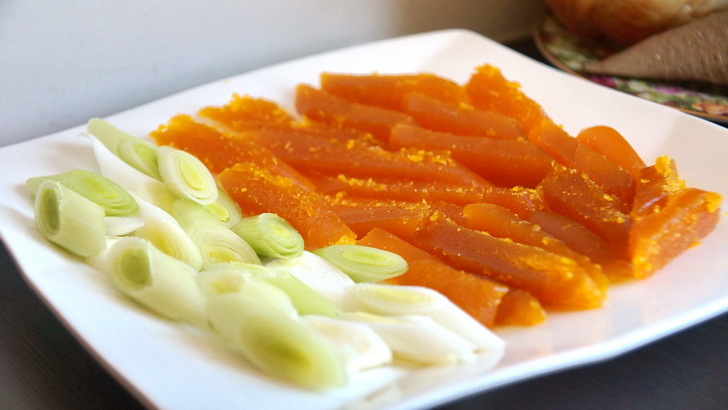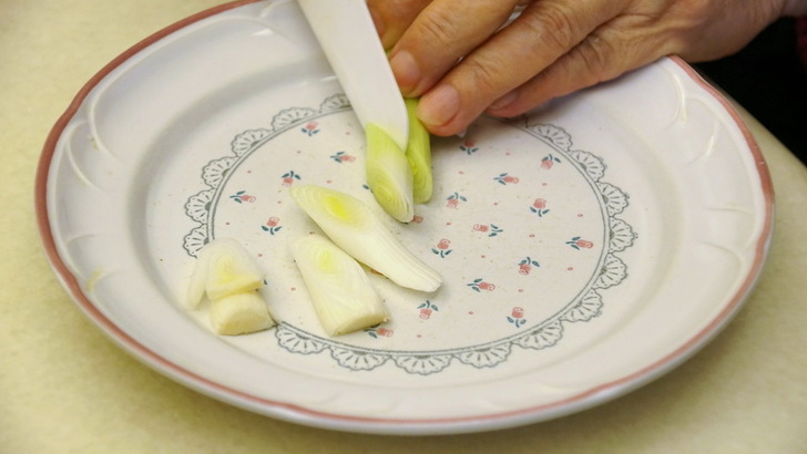 切點蔥花,拿一半的蒜段與烏魚子切成小丁