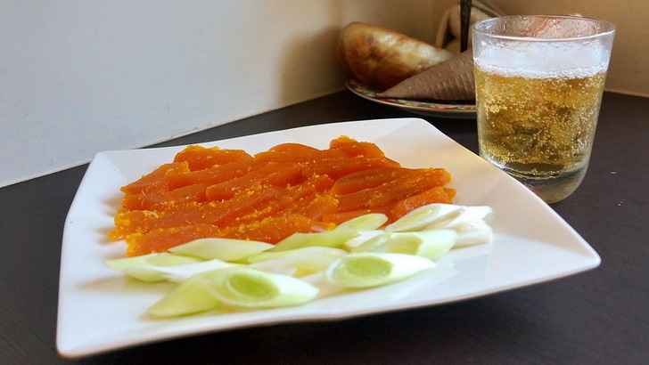 雖然是白天,但真的忍不住,拿了一瓶啤酒出來,烤烏魚子真的是下酒良伴。