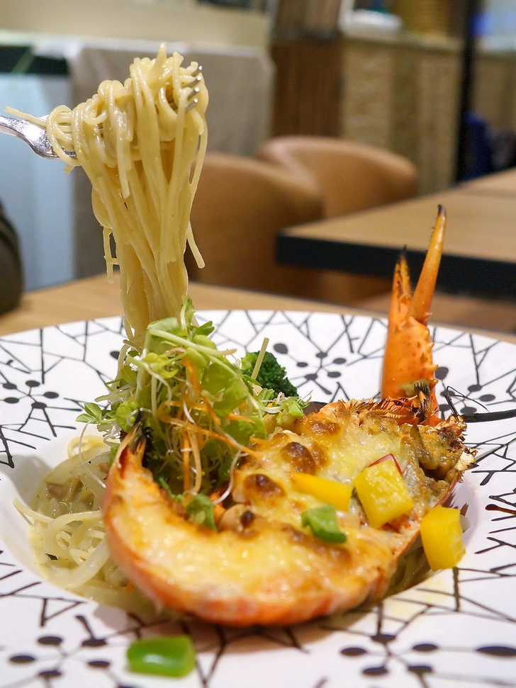 看到盤子上那焗烤過的半隻波士頓龍蝦,你會覺得有龍蝦就是好棒棒無須多言吧,其實不是這樣,台灣人愛吃龍蝦是沒錯,但是請不要忘了還有天使麵的存在啊。