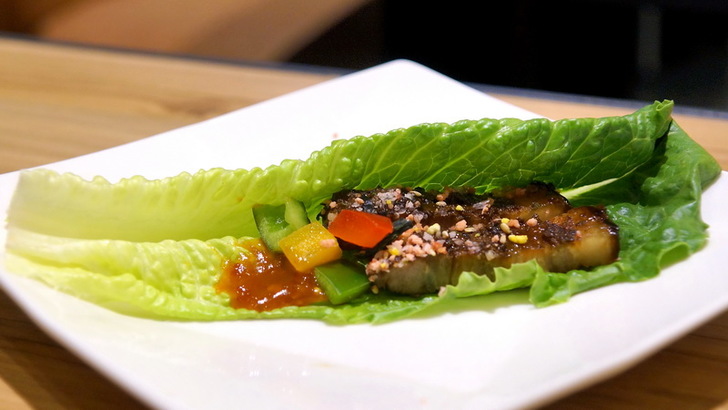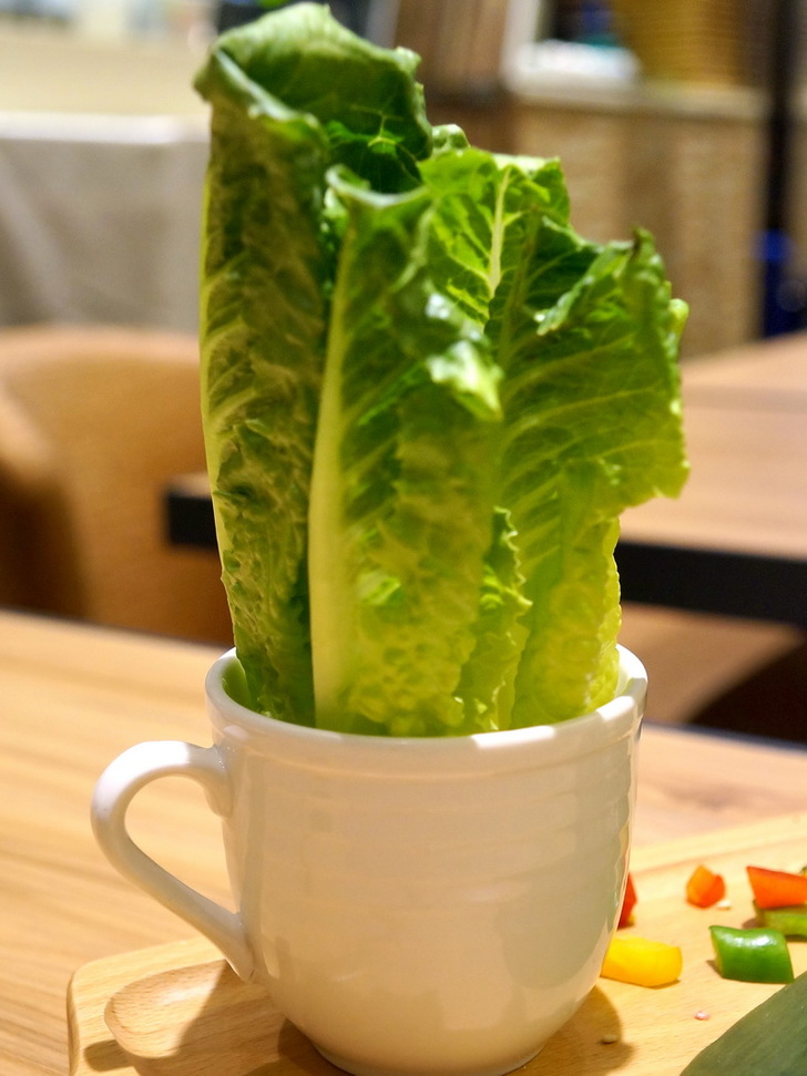 老媽比我有意志力,客服了米飯的誘惑,她用生菜包肉來吃,清爽不油膩,搭配一點點的甜辣醬,更加開胃。