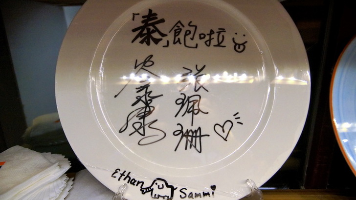 有幾位名人簽名龍飛鳳舞,一時看不出是誰,我看得出來的,一個是岑永康張佩珊夫婦,一個是小胖林育群,希望有一天我也能簽名在盤子上啊~~。