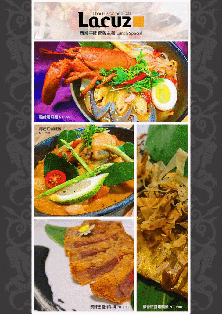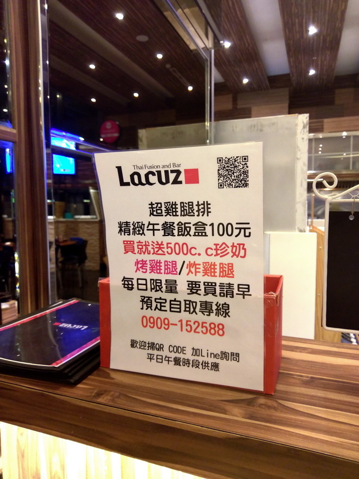 Lacuz這家餐廳的第一間店成立於西元2004年,距今已經14年了,一開幕可就是台北數一數二的泰式餐廳,當年剛開幕的時候,我就是他們的顧客了,14年來,台北的餐飲市場,不知道已經重新洗牌了幾次,Lacuz還能屹立在競爭激烈的台北,表示這餐廳不簡單。Lacuz這個字是甚麼意思?Lacuz的念法為 /la’guz/,這個羅馬拼音的意思是布農族的女性名字,這個名字是老闆娘的母語名。到了2017年,這家餐廳終於有了中文名稱「泰食-樂」。