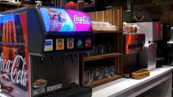 本次因為父母在,所以不飲酒,但是不喝精釀啤酒的話就沒沒有飲料可以喝了嗎?這裡有無限自助飲料吧,有汽水果汁之類的軟性飲料,熱的紅茶綠茶與熱咖啡可以飲用。