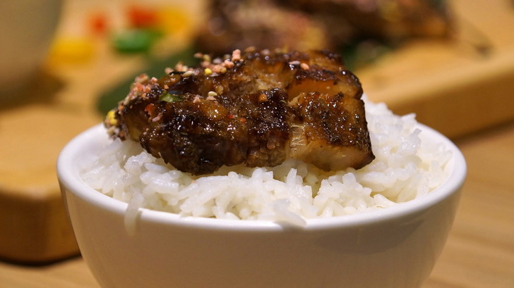 這道菜的作法其實跟我們烤山豬肉非常接近,但用泰式香料醃漬入味後去烤,氣味實在非常香,也與外面的烤山豬肉氣味有所不同。