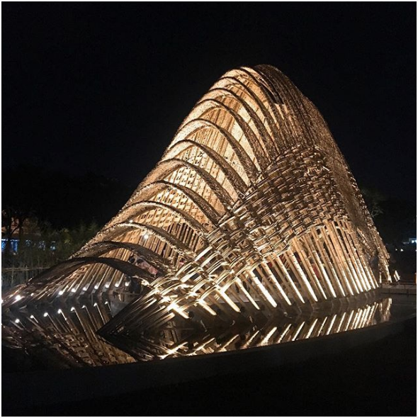 2018年11月剛開幕的台中世界花卉博覽會不管是建築還是館內的設計都很用心,剛開幕不久就成為台中IG景點新寵兒,不管室內室外都好拍。其中最受熱門的拍照景點是豐原葫蘆墩園區的「竹跡館」,使用竹子代替混凝土,建築外型融合了種子及中央山脈的意象,拍起來直接就是自然系美女!