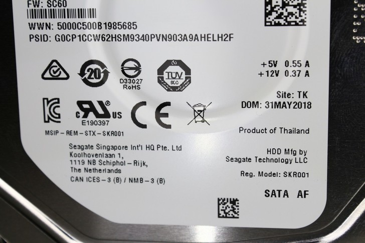 ▲此顆ST4000VN008 NAS 硬碟由 Seagate 泰國廠製造。