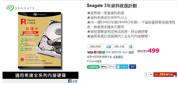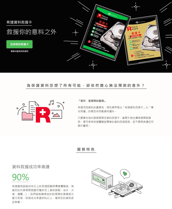 ▲另外可採購 Seagate 資料救援卡的服務,只要事先為內接硬碟綁定資料救援卡,當意外發生導致硬碟毀損時,便可享有希捷實驗室專業的資料救援服務,且不需再負擔任何額外費用。