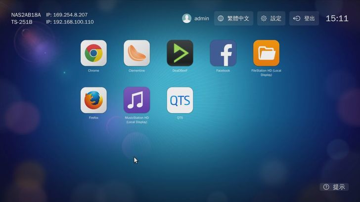 ▲透過NAS HDMI直接接上螢幕後,會進入到HybridDesk Station影音娛樂系統,如同機上盒一樣可安裝各式QNAP提供之 APP 內容,像在公司中就能透過 NAS 直接做硬碟影片播放或者執行簡報。