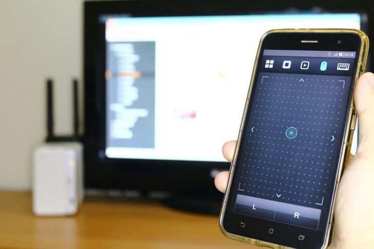 ▲連上同一區域網路後搭配專用手機APP「Qremote」,手機也能當作滑鼠觸控板控制NAS介面。