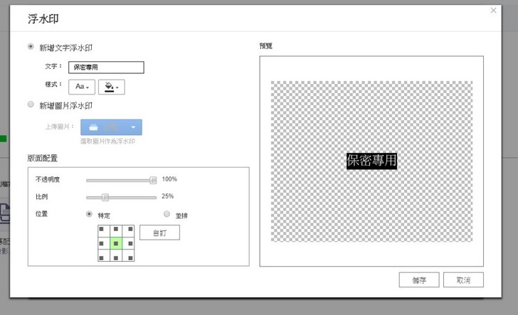 ▲歸檔的同時還能將重要個資加上浮水印記,可選擇文字或是圖片做為浮水印,讓這些重要個資加上一層保護。