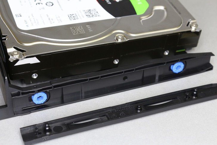 ▲開啟前蓋後即可看到 2 way 硬碟抽取槽,關機狀態下直接拔出即可快速更換硬碟,可安裝3.5吋硬碟或搭配套件安裝 2.5吋SSD、筆電硬碟。