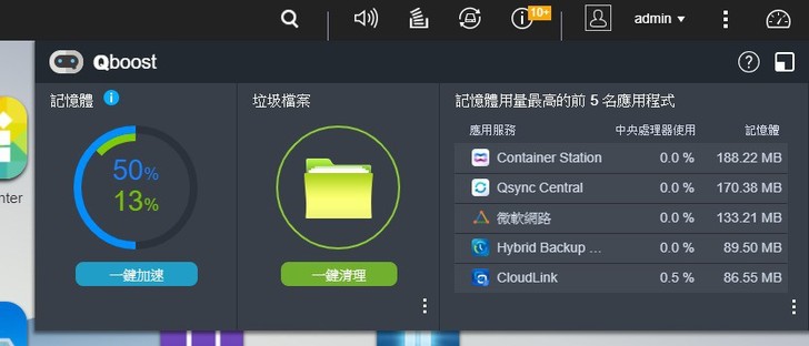 ▲QTS 內的 Qboost 會隨時監控系統狀況,當有系統異常就會跳出警示並提出建議的解決方案。