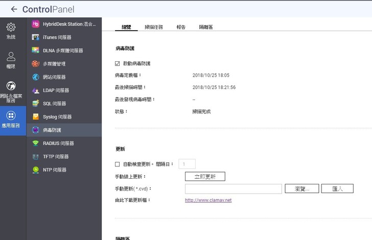▲QTS 控制台內建病毒防護功能,對於保護公司重要資料時格外重要。