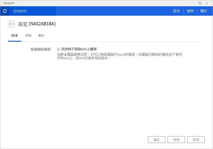 ▲特殊的「智慧刪除檔案」功能,就算是誤刪本機電腦檔案也不讓NAS上的檔案移除,此功能能防人員不當的電腦操作。