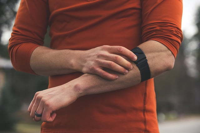 Rhythm24 是由矽和聚碳酸酯材料混合而成的產品,內附柔軟、易於更換的彈性帶,可綁在運動員的手臂上。