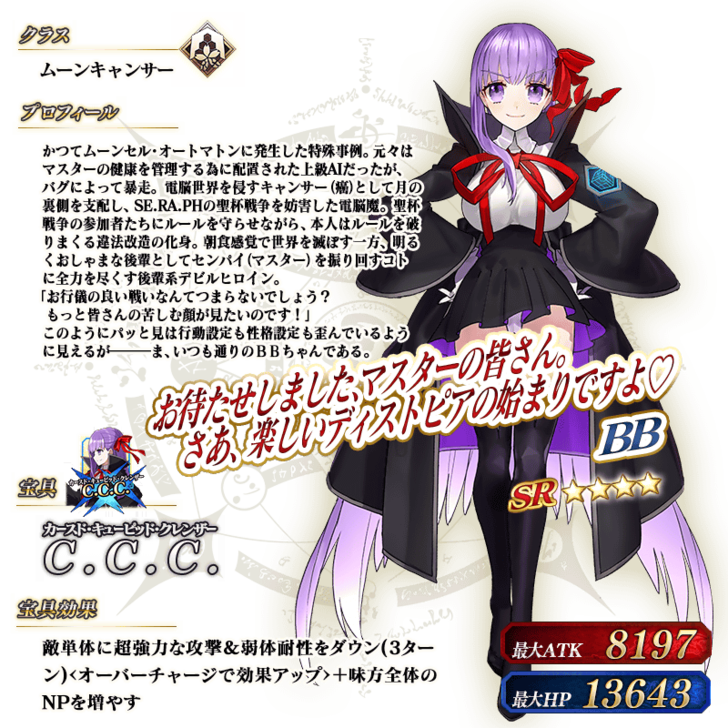 其中帶出最活躍的角色就是以原作的間桐櫻為藍本的其中一位女主角 - BB