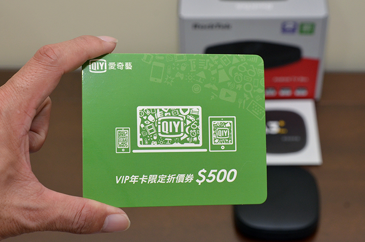 ▲ A3+ 除了CATCHPLAY每月10部熱門影片會員免費看,隨機就附贈愛奇藝VIP一年500元折價券,如果A3+ 售價NT:2600元,扣除500元,主機大約只要 NT:2100 元。