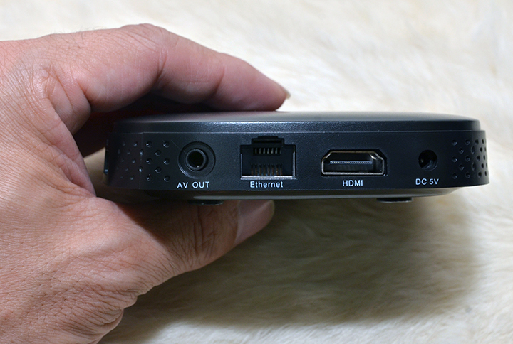 ▲ 後方則為AV端子、乙太網路插槽、HDMI 2.0 埠、DC 5V/2A 電源孔。