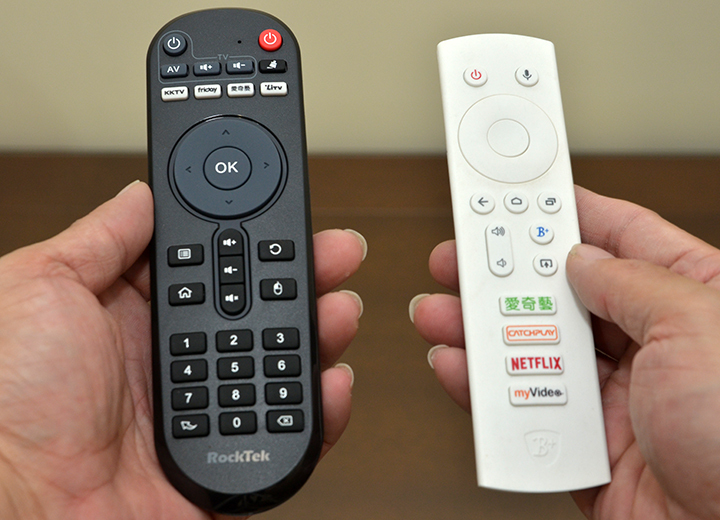 ▲ 兩者遙控器大致雷同,圓盤式方向鍵、返回、首頁、電源、選項、音量等按鍵,另外配置 KKTV、friDay、愛奇藝、LiTV快速啟動鍵,想追劇、看影片,會更加方便!A3+還多數字鍵與可切換滑鼠。