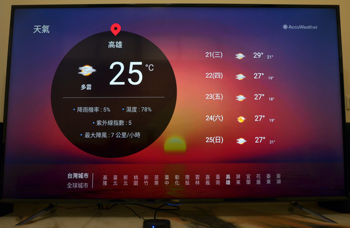 ▲ 點選右下方的天氣資訊區,可查詢台灣與全球的天氣資訊,再出門前可以預先了解當地氣候狀況,也可以透過網路所在的位置,知道目前所在地區這一週的天氣變化狀況。