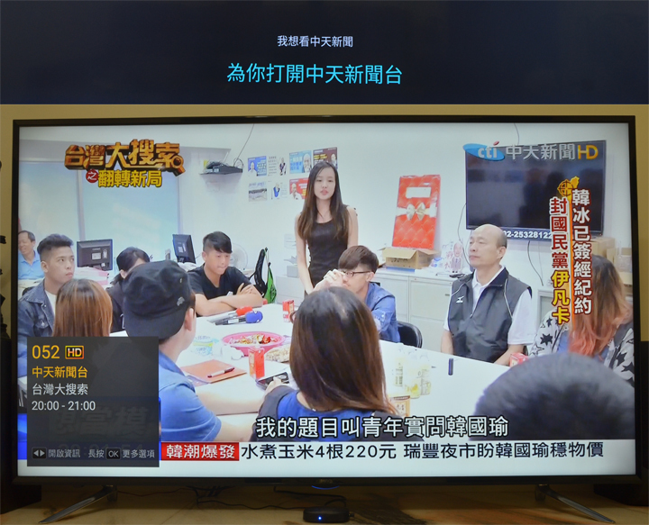 ▲ 因為有AI語音助理,這對年紀稍長的父母非常好用,他們無需打字,只要對著遙控器說出『我想看中天新聞』,A3+ 立即快速切換到『LiTV』電視頻道的中天新聞HD。