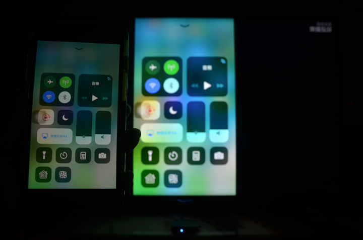 ▲ 操作方式非常簡單,例如我的iOS系統,開啟快捷工具,點選投屏iCON,就能讓手機與電視螢幕作同步播放。