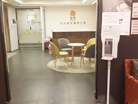 亞太通商大樓的七樓就是賀果悅兒產後護理之家,其實進到大門已經能感覺這環境很安靜,沒有閒雜人士的進出,反之給媽媽很好的休息環境,而且進去前還要先做好雙手消毒,並且量體溫和戴上口罩才能進入,替館內嬰兒及媽媽的健康做好把關