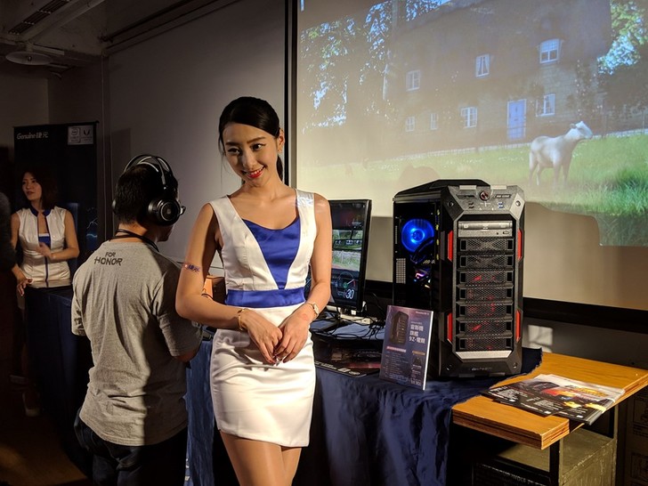 為什麼練習這麼重要呢?因為比賽的大獎是可以把捷元的其他宙斯機種抱回家,你看看玩家練得有多認真,美美的SG站在旁邊依然面不改色,繼續練習,佩服!