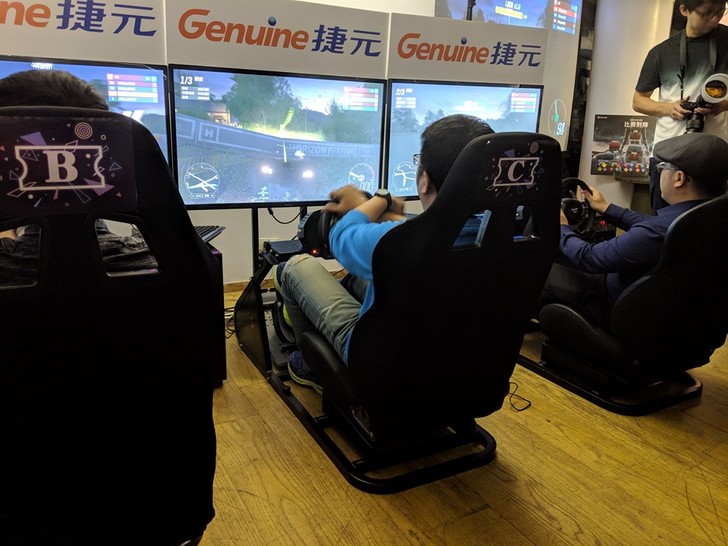 抵達活動現場時,時間稍微晚了點,現場已經有各路老司機...我是說各路玩家,玩家們看起來都蓄勢待發了。因為自己只在家機玩過前幾代的作品,為了要在等下的賽車比賽有好的表現,先去旁邊找電腦偷練一下