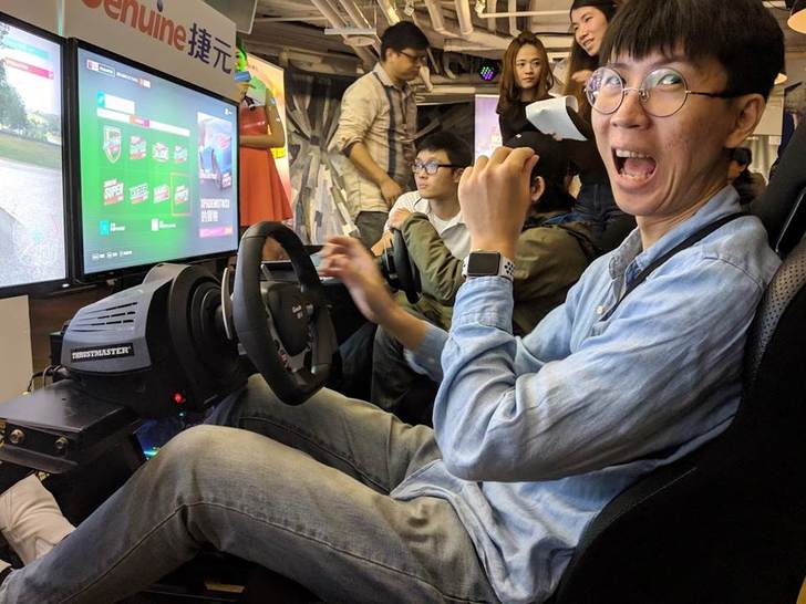 ▲上面那張講的好像我握過真實方向盤一樣,事實上我剛剛還問工程師哪個是油門(汗),不管啦,這邊踩錯頂多淘汰而已