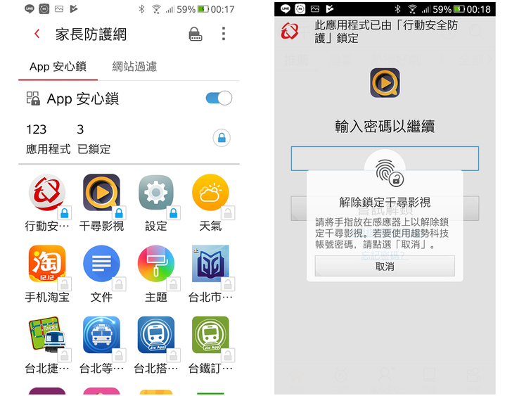 【家長防護網】我家小孩常趁著我不注意的時候,拿我手機在玩遊戲,這下該怎麼讓他們不要玩呢/?又不可能一直把手機藏起來,這個功能就超好用的,只要把APP鎖起來,這樣以後他就算拿到手機也沒有辦法玩,我想我家小孩應該開始討厭2019年PC-cillin雲端版APP了吧~但鎖起來每次都要輸入密碼是不是很麻煩,2019年PC-cillin雲端版幫你想到了,它可以利用指紋解鎖,是不是很方便啊~哈哈