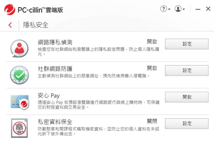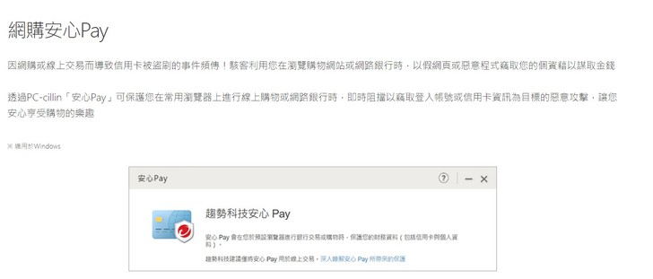 2019年PC-cillin雲端版也加強了目前最流行的"行動支付"的安全性,讓我們使用行動支付時減少將資料曝露在危機中
