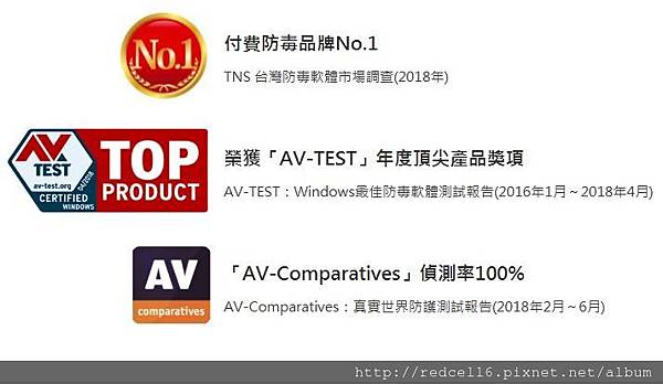 【▼】趨勢科技PC-cillin 2019雲端版防毒軟體經各大主流公信媒體一致給予肯定獎項認證。