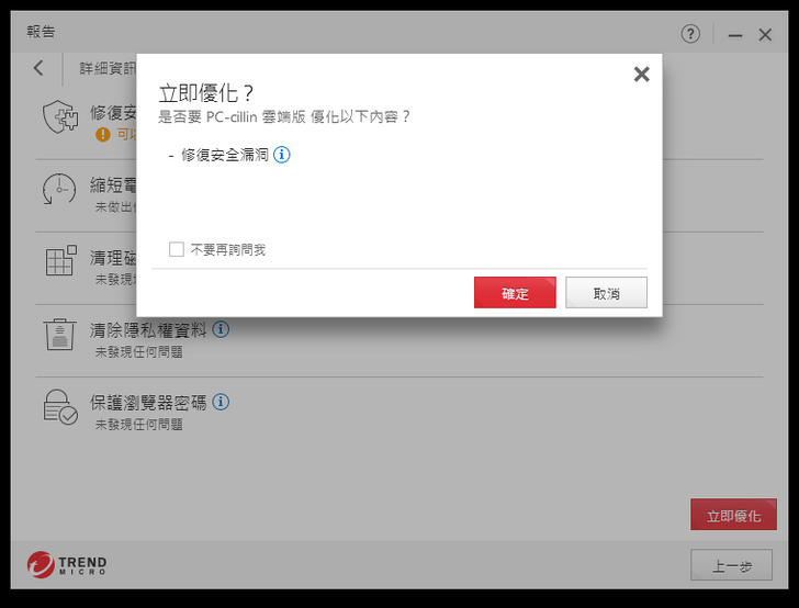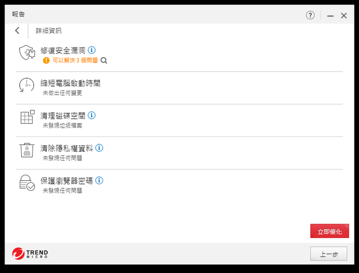 ▲很快就掃瞄完成了,我的電腦目前有一個需要優化項目。
