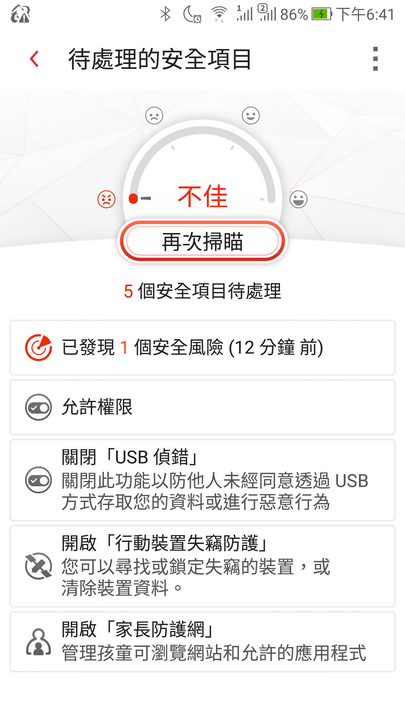 ▲點第一個安全風險,被發現我之前安裝的手機挖礦軟體,顯示「強烈建議解除安裝」,那就解除安裝吧。