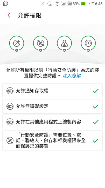 ▲點第二個「允許權限」,有4個需要允許讓PC-cillin 2019雲端版有權限可以保護你的手機。