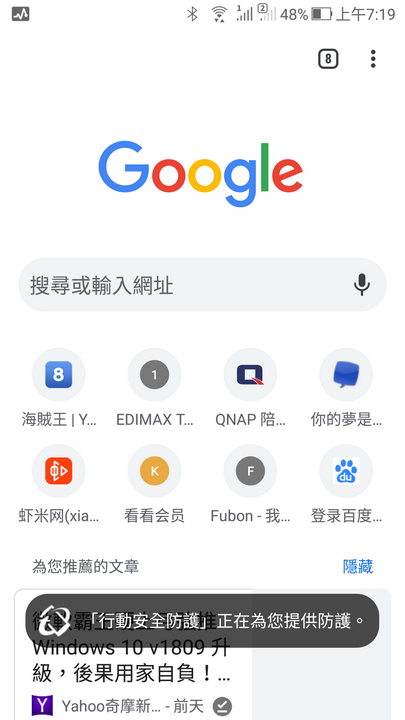 ▲之後在Chrome中搜尋網頁時,會出現綠色勾勾的安全防護確認。