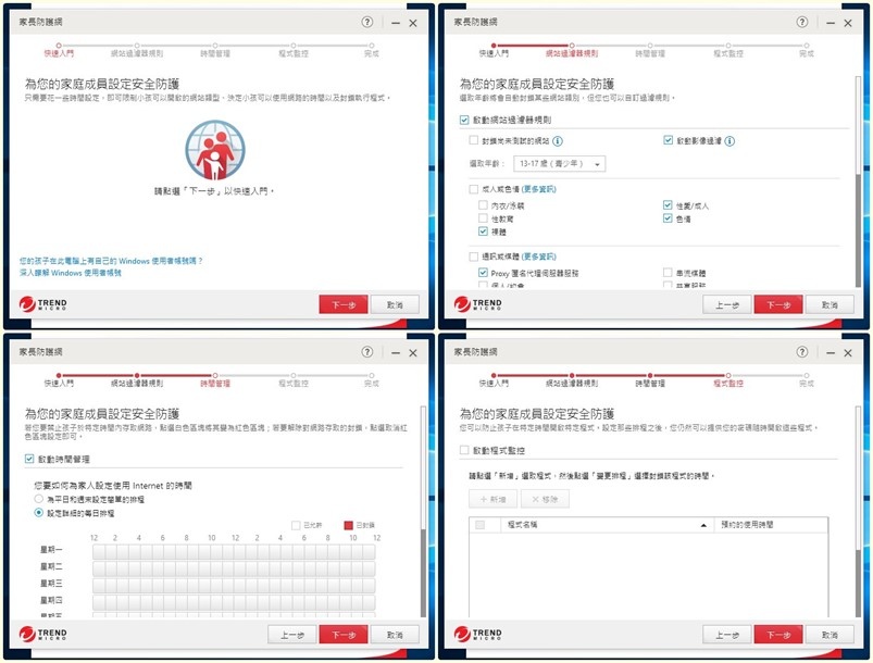 ▲家長防護、社群網路隱私權、行動裝置失竊防護