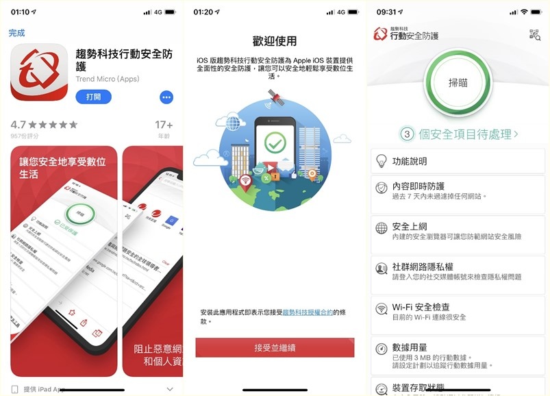 iOS版的行動安全防護一樣可以在APP STORE下載安裝,一樣也有提供試用