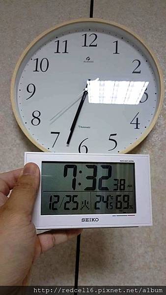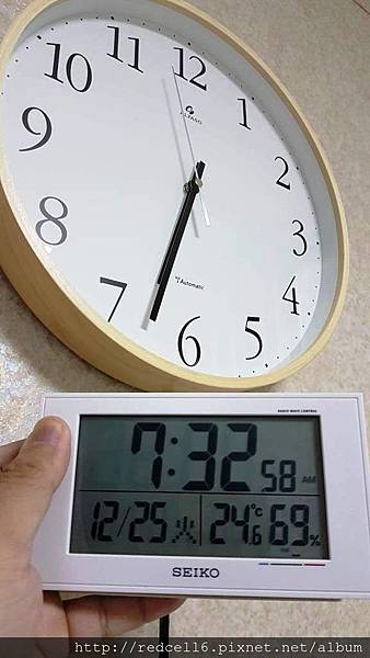 【▼】和日本精工的電波計時器比較(一個小時時差)!法詩計時的電波鐘可以正確接收顯示中華民國國家標準時間(GMT+8)