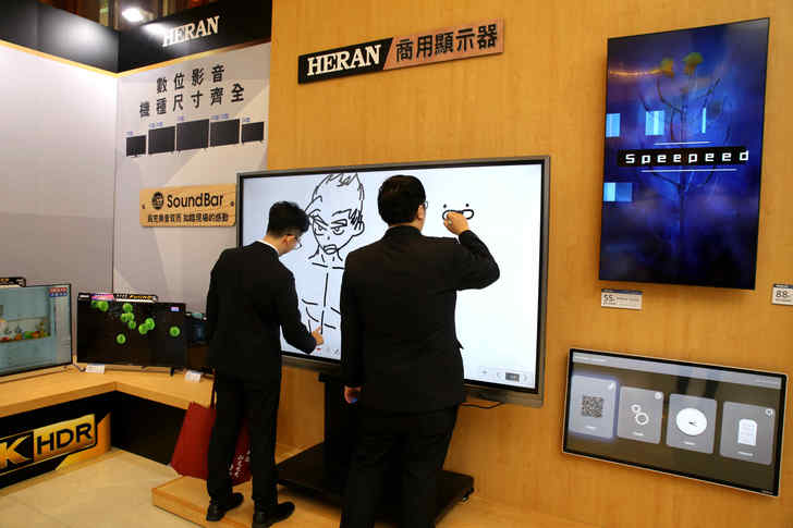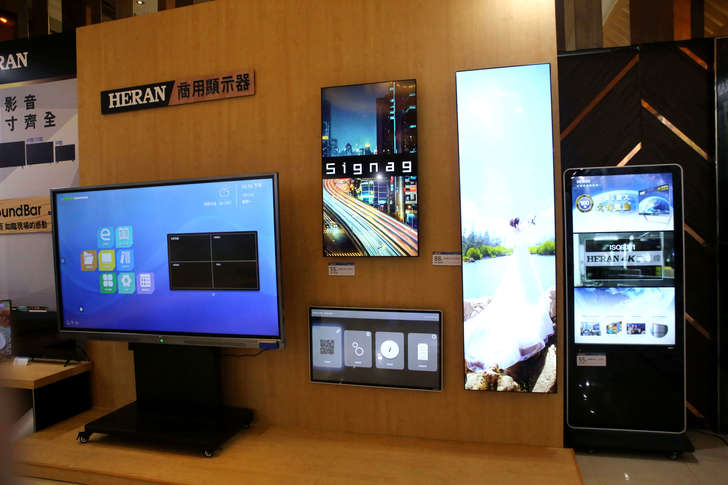 商用領域除了前面所提到的空調系統外,在顯示器的市場也不缺席,應用大致上就是結合廣告看板、客顯點餐系統,也可嵌入商用迷你系統來操作,當然也可以結合觸控功能來做為教學使用用途。