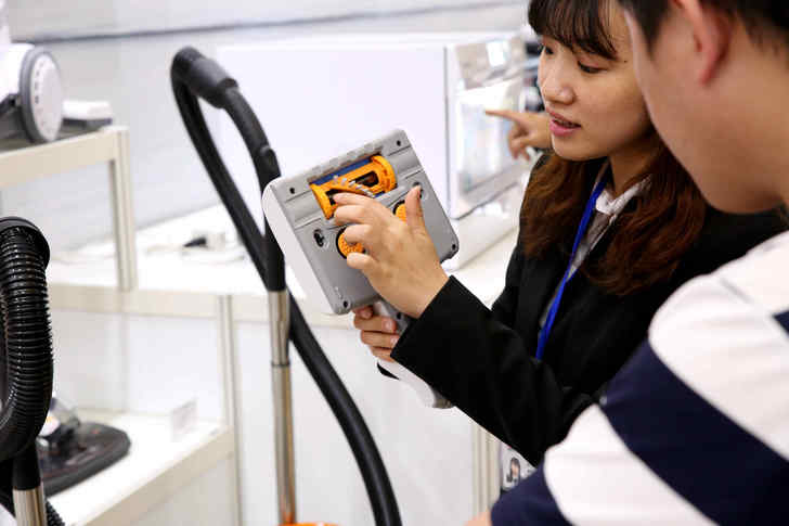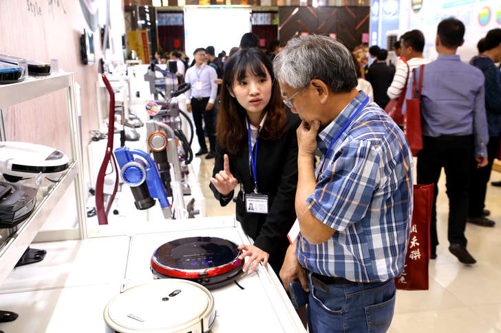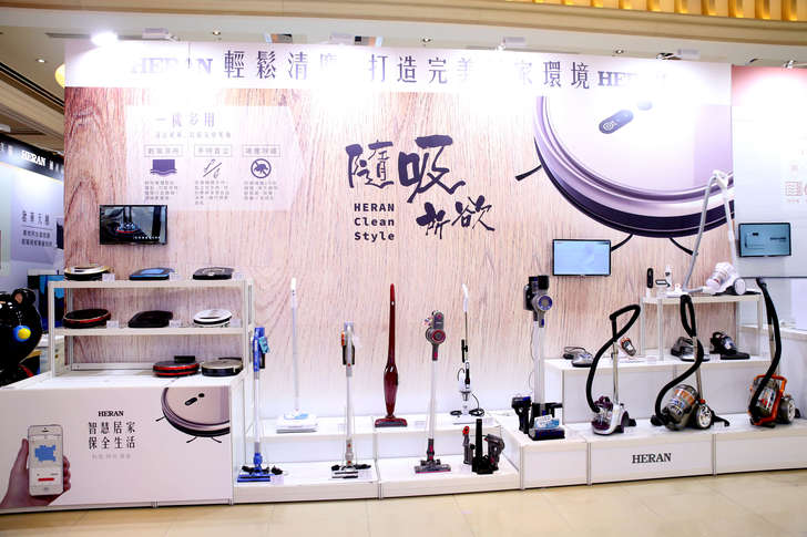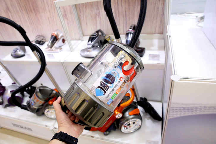 接下來就是居家清潔必備道具:吸塵器,現場有展示多款機型,也有最新的掃地機器人。