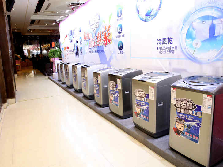 在洗衣機上清一色都是直立式,並沒有看到滾筒式洗衣機,經詢問過後了解為何不規劃滾筒式機種是因為絕大部分的滾筒式洗衣機比直立式的還要占空間,因此一開始規劃還是以最多人使用的直立式機種為主。