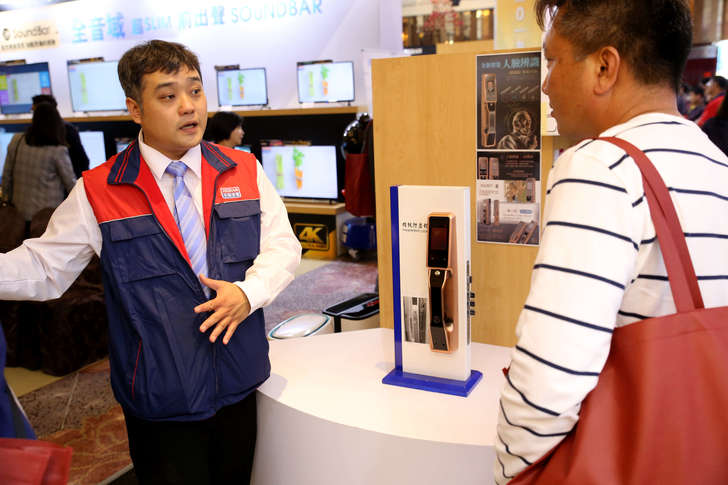 除了既有的電視、冷氣,跨足到小家電以及電冰箱與洗衣機,接下來會再開發許多更生活應用層面的產品來讓消費者有更便利智慧的生活模式,例如圖片中展示的人臉辨識門鎖系統,連感應卡或是輸入密碼都不用,也不用擔心使用指紋感應系統被複製的資安問題。