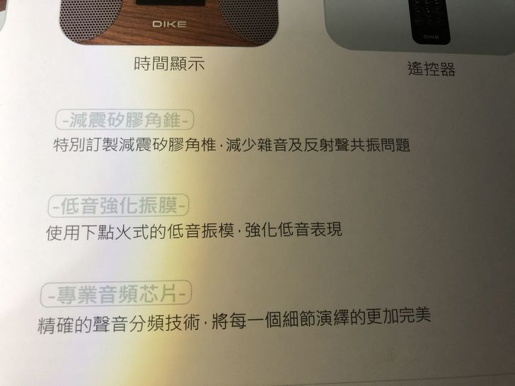 DIKE DS603 禪聲-多功能一體式藍牙喇叭雙前立體聲喇叭+下置式重低音喇叭共3組喇叭的設計,這幾天拿來用聽YOUTUBE各類型的流行音樂 , 對於低音的量感印象十分深刻,整體感受相當優秀,而透過藍芽直接撥放自己喜愛清單的音樂,不受耳機拘束的感覺真好。